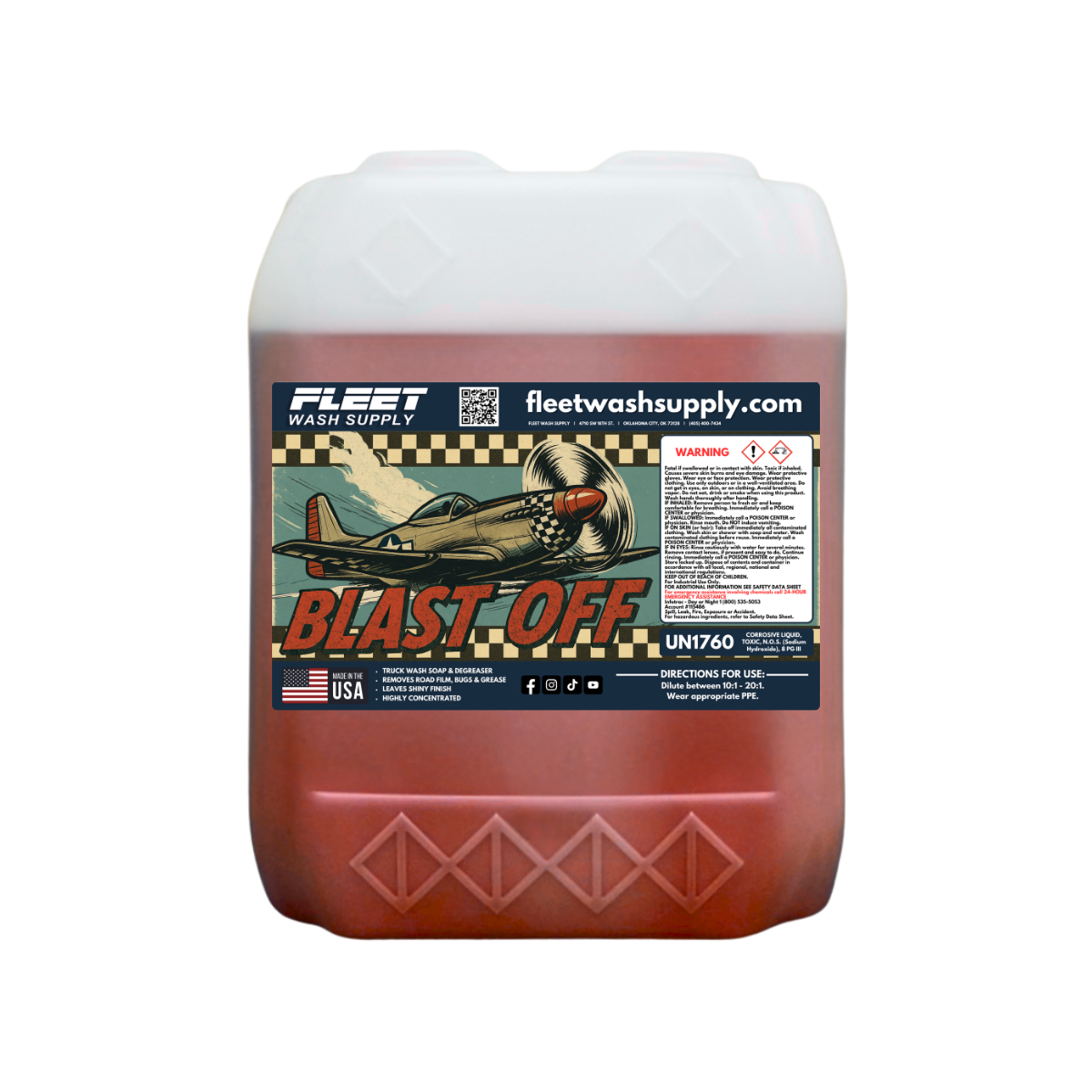 Blast Off is a powerful truck wash soap that tackles tough jobs with ease, removing road film, bugs, and grease like a pro. It's versatility doesn't stop there; it can be used as an all-purpose cleaner for interior surfaces and more. Whether you're washing down a dirty rig or detailing the inside of a cab, Blast Off gets the job done. Plus, it leaves a showroom shine, making it the perfect solution for any cleaning task.